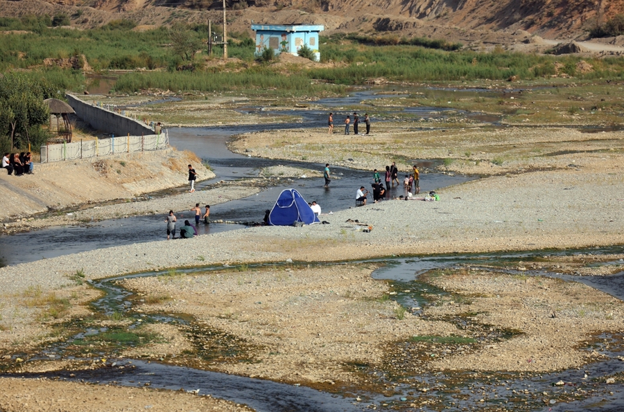 德黑兰民众在几乎干涸的河床内野餐。图源:GJ
